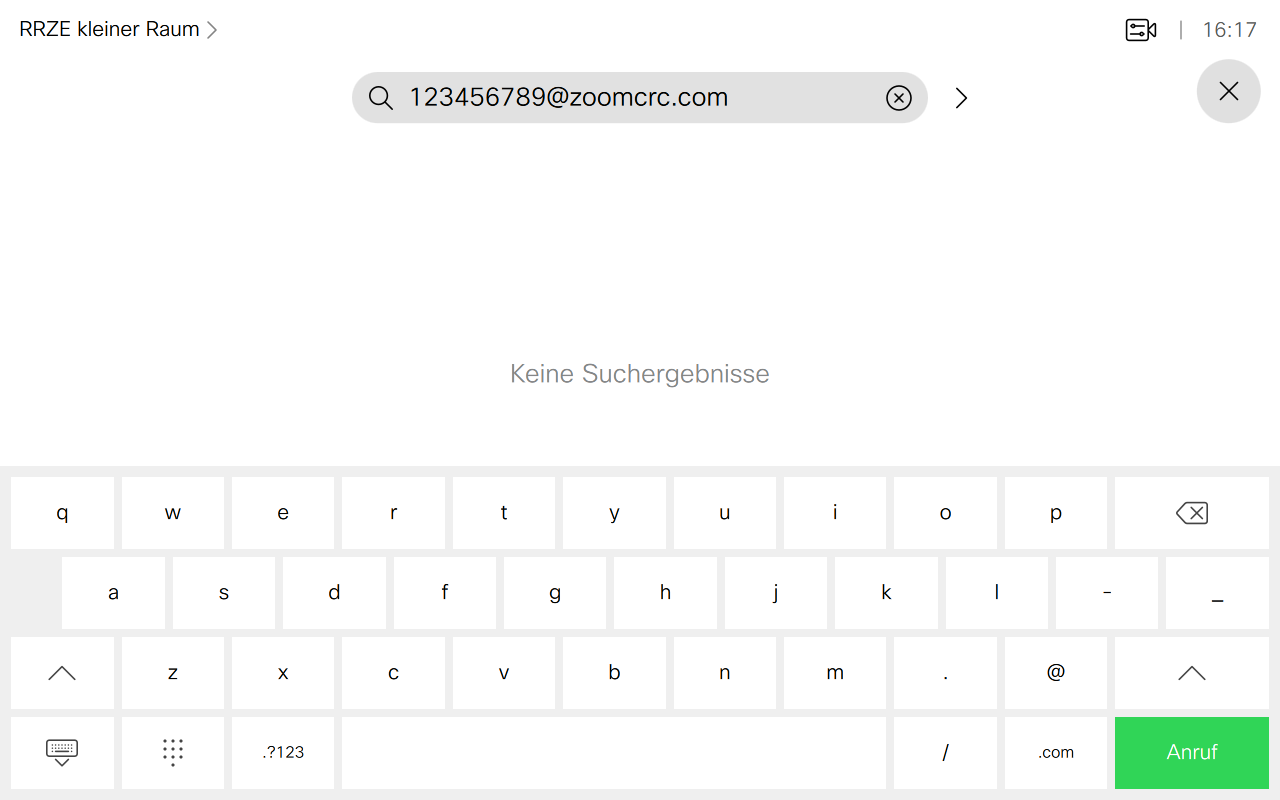 Diese Information muss am Touchpanel des Cisco Videokonferenzgerät eingegeben werden.