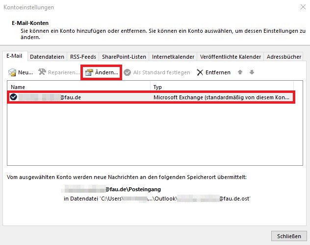 Wenn Sie den Outlook-Client im „Exchange-Cache-Modus“ verwenden, werden nur Nachrichten mit einem bestimmten Alter (standardmäßig zwölf Monate) im Client angezeigt. Die restlichen E-Mails sind ausschließlich auf dem Server verfügbar und können in der Weboberfläche https://groupware.fau.de/owa/ angezeigt werden.