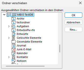 Anschließend können Sie in folgendem Menü die Zielmailbox oder einen Unterordner der Zielmailbox auswählen: