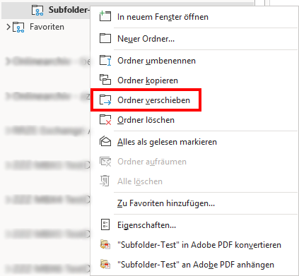 Dies erreichen Sie über einen Rechtsklick auf den zu verschiebenden Ordner.