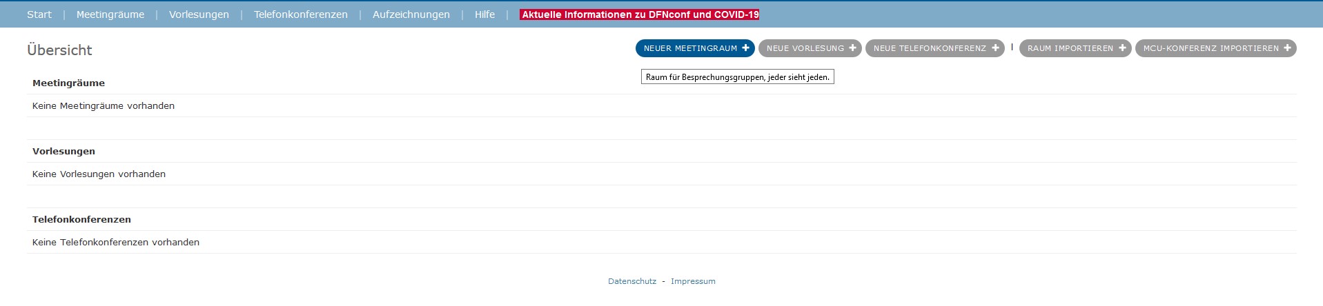 - Öffnen Sie in einem Internet-Browser die Seite: https://conf.dfn.de/webapp/home