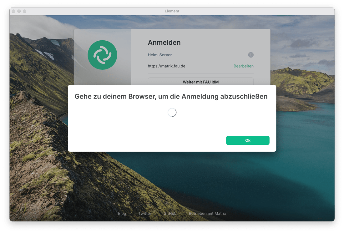 Falls Sie Matrix über die Weboberfläche nutzen möchten, lesen Sie im Abschnitt „Anmeldung über die Weboberfläche weiter“.