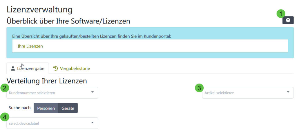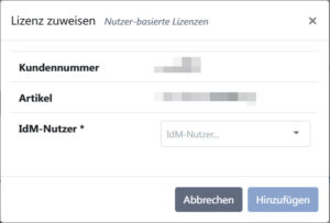 Wenn keine freien Abos verfügbar sind, ist das Feld hellblau und nicht anwählbar (10). Weitere Lizenzen können im Kundenportal bestellt werden.